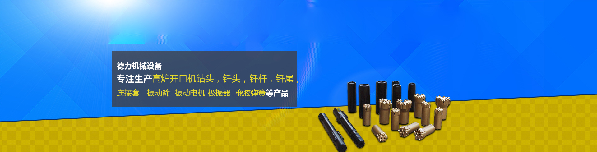 新鄉市德力機械設備有限公司坐落在新鄉高新技術開發西區。地理位置優越,交通、通訊設施便利。 公司是機械部定點生產**廠家,從事釬具研究生產有著經驗和加工制造能力。并具備比較完善的技術檢測能力,整體實力位于同行前列, 公司專注生產高爐開口機鉆頭,釬頭,釬桿,釬尾,連接套等產品廣泛應用于冶金,礦山,煤炭等行業,產品覆蓋各地 始終堅持運用國際、國內的軟件進行產品設計和開發。......更多>> 備案號:豫ICP備17004423號-1